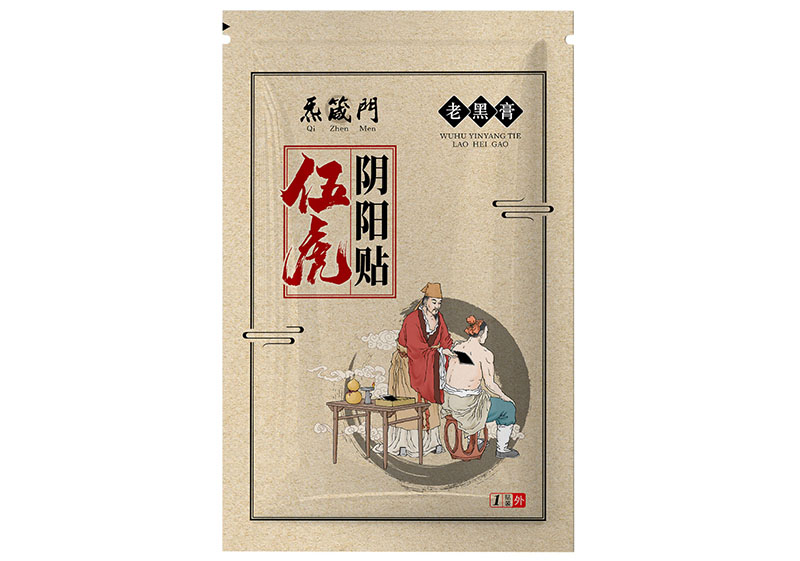 【产品名称】伍虎阴阳贴【原料组成】制川乌、制草乌、当归、川芎、延胡索、透骨草、杜仲、五加皮、骨碎补、伸筋草、桃仁、蜈蚣、全蝎、天麻、乳香、没药、白芷、干姜、细辛···